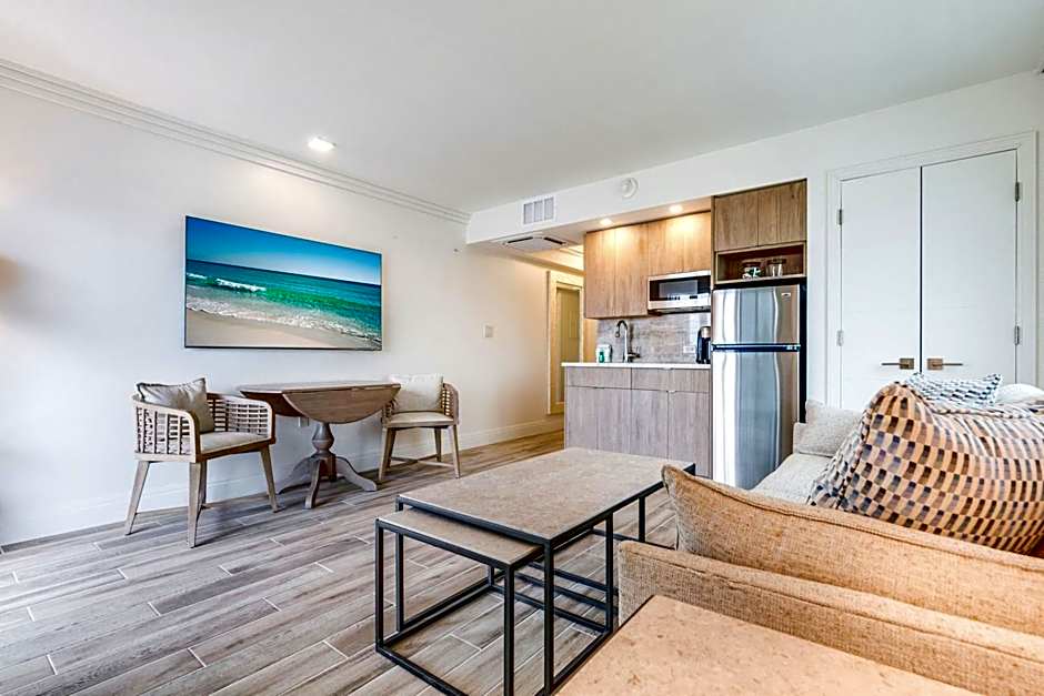 Located poolside with partial views of the Gulf of Mexico, this suite includes a balcony, separate living room, and a 42-inch flat-screen TV. A small refrigerator and microwave are provided.