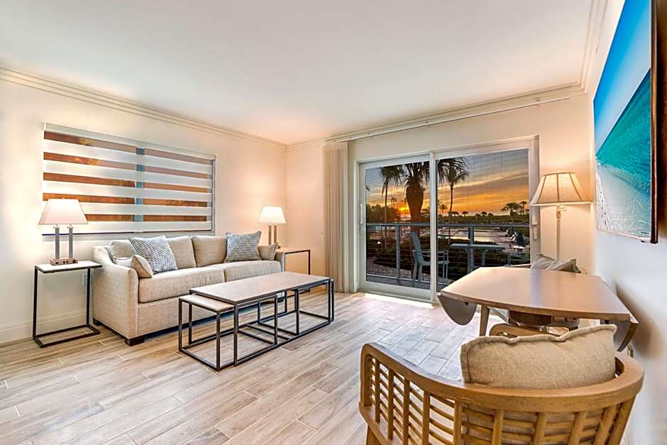 Located poolside with partial views of the Gulf of Mexico, this room features a screened balcony, small refrigerator, microwave, and coffee-making facilities.